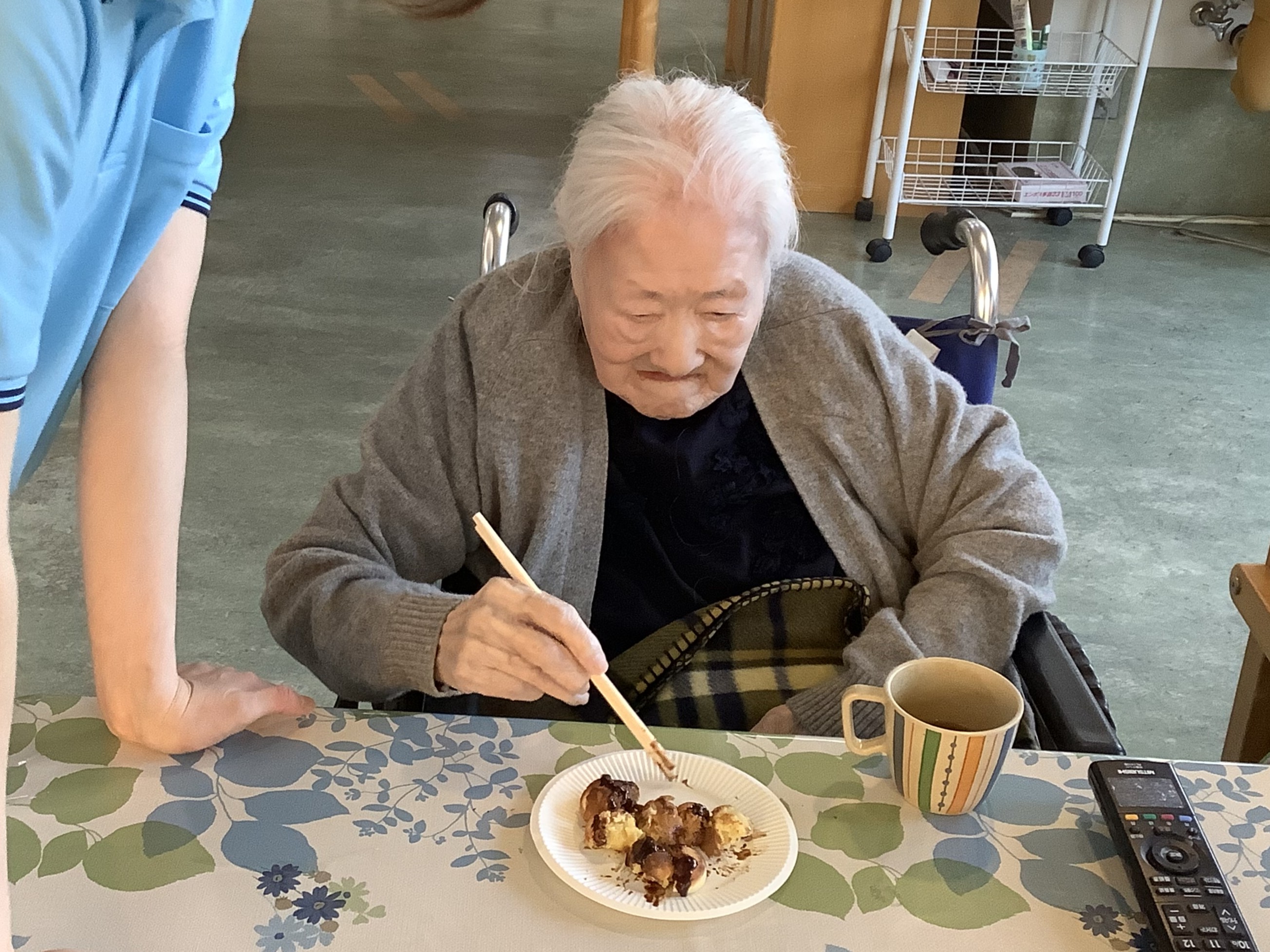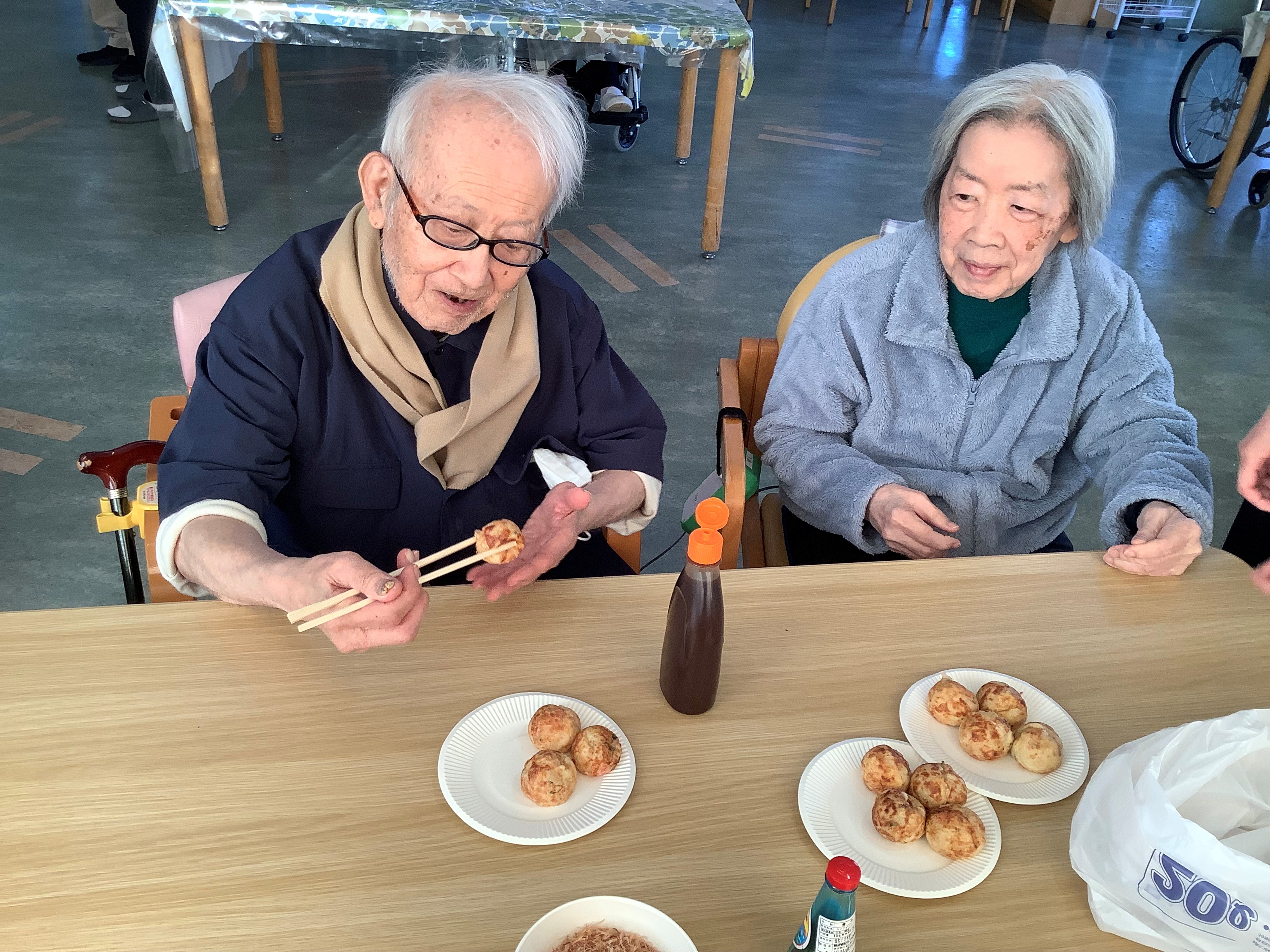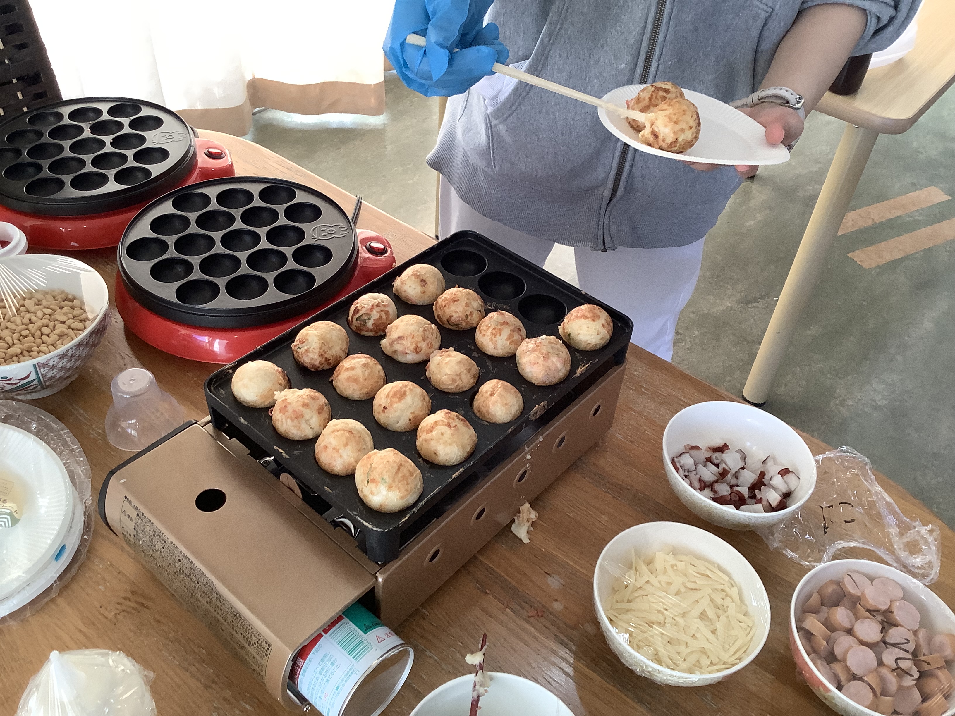 たこ焼き機でたこ焼きとベビーカステラを作り、皆様に召し上がっていただきました。